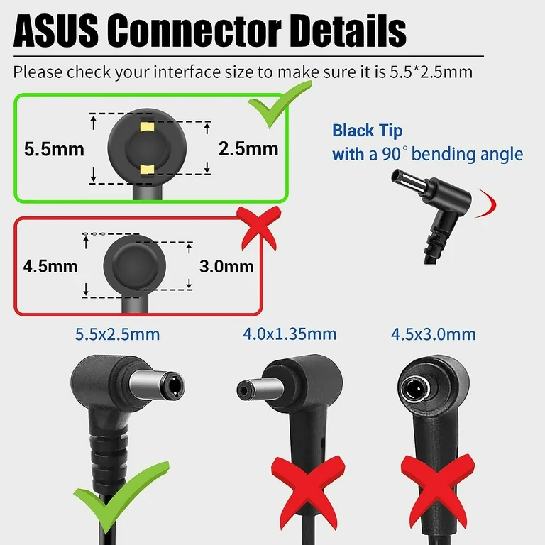 【POWER SPECS】AC input: 100-240V 50/60Hz, Output:20V 7.5A 150W, Max Output Power:150W, Connector size:6.0*3.7mm ( not 4.5*3.0mm or 5.5*2.5mm )Tips NOT replace Asus 150w 19.5V 7.7A / 19V 7.9A charger, please confirm before you buy !!