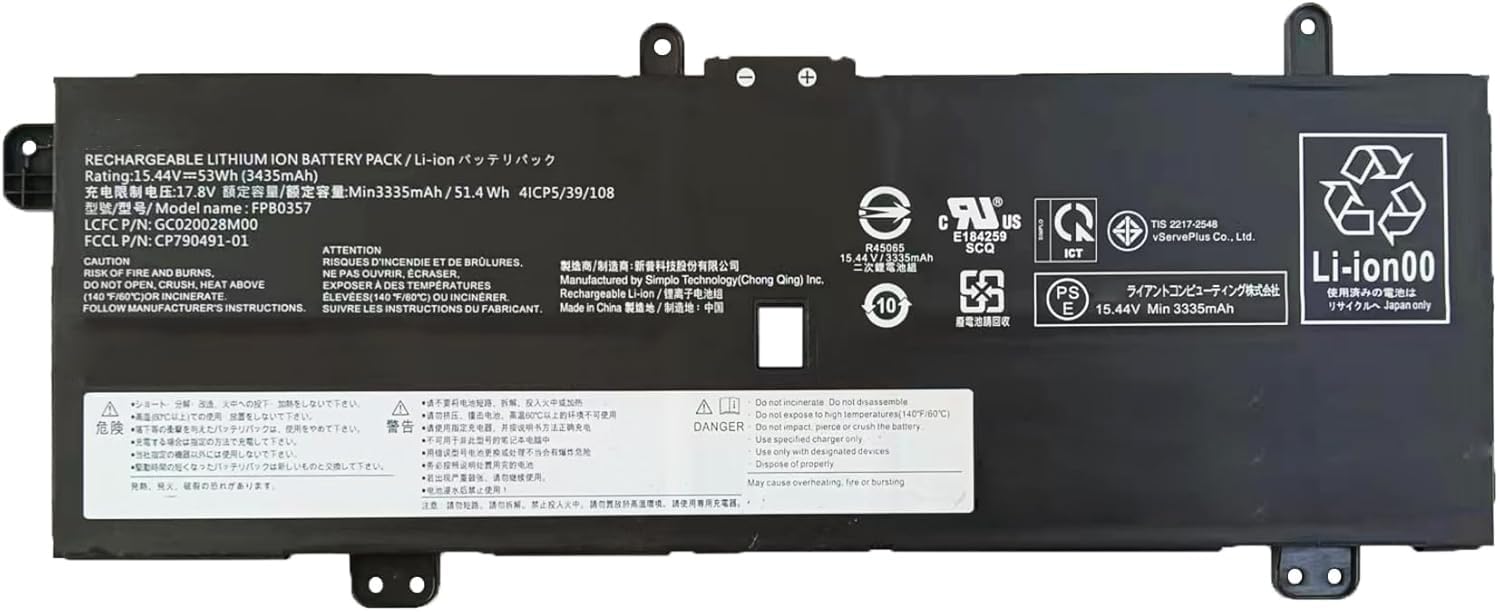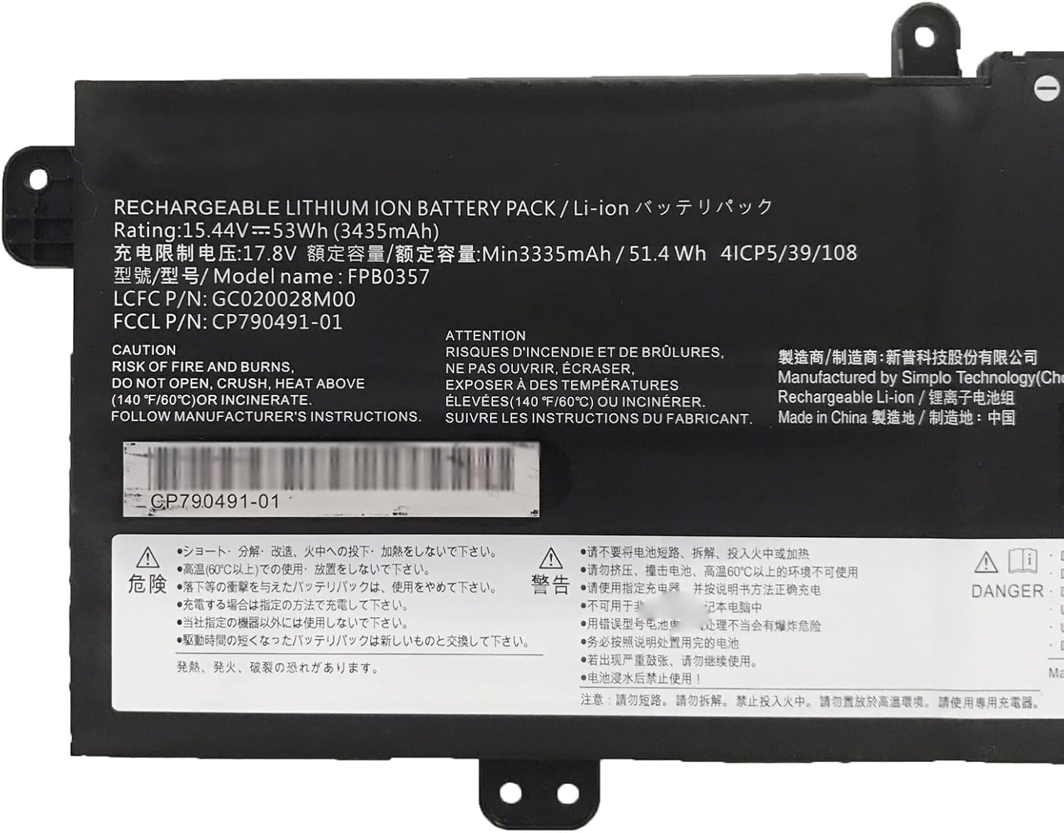FPB0357 Laptop Battery 53Wh 3435mAh 15.44V Compatible for Fujitsu FMV LIFEBOOK CH75/E3 CH90/E3 WC2/E3 WC1/E3 Series CP790491-01 GC020028M00 4ICP5/39/108