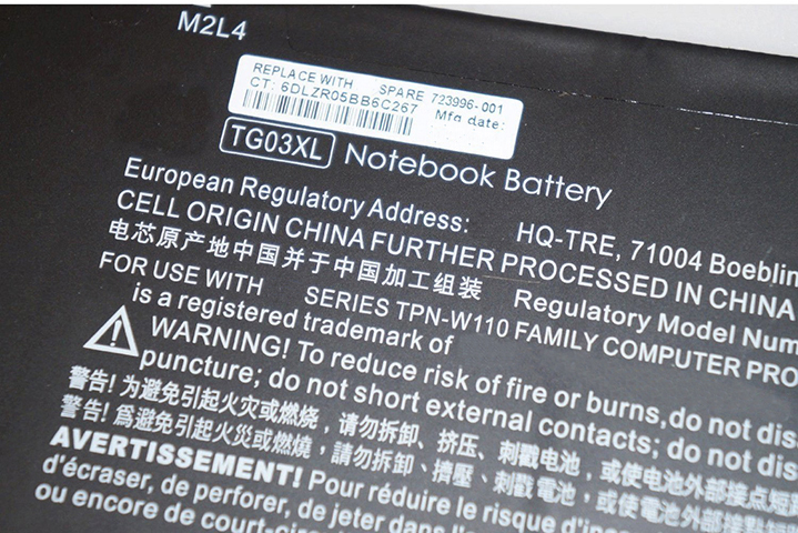 • Except for being designed under the supreme control criterion, the high-quality replacement HP TG03XL laptop battery carries with a smart interior circuit board that provides battery-unbalanced-shut-off protection, thermal-runaway protection, overcharged protection, over-discharged-shut-off protection, and high/low-temperature-shut-off protection. Besides, the battery contains free lead, mercury and other environmental metal pollutants. It is compliance with international standards. Every replacement HP laptop battery has passed through a series of rigorous safety tests and been certified by CE, UL, ROHS, ISO9001/9002. Generally speaking, this replacement HP TG03XL battery can be charged/discharged up to more than 600-800 cycles.